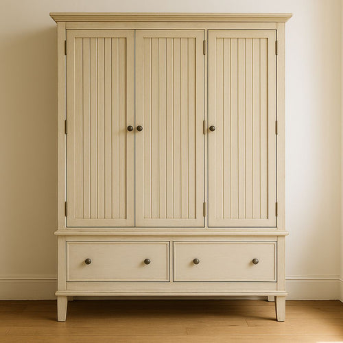 Estructura de madera maciza, cama doble, tapizado en poliéster color crema 200x160x140 cm -